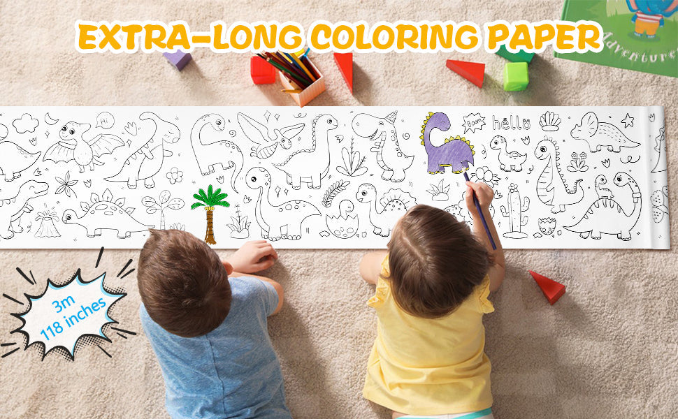 🖌️Compatible with Different Types of Pens — This 118*12 inch coloring paper roll is suitable for almost all coloring art supplies, such as crayons, colored pencils, gel pens and markers.