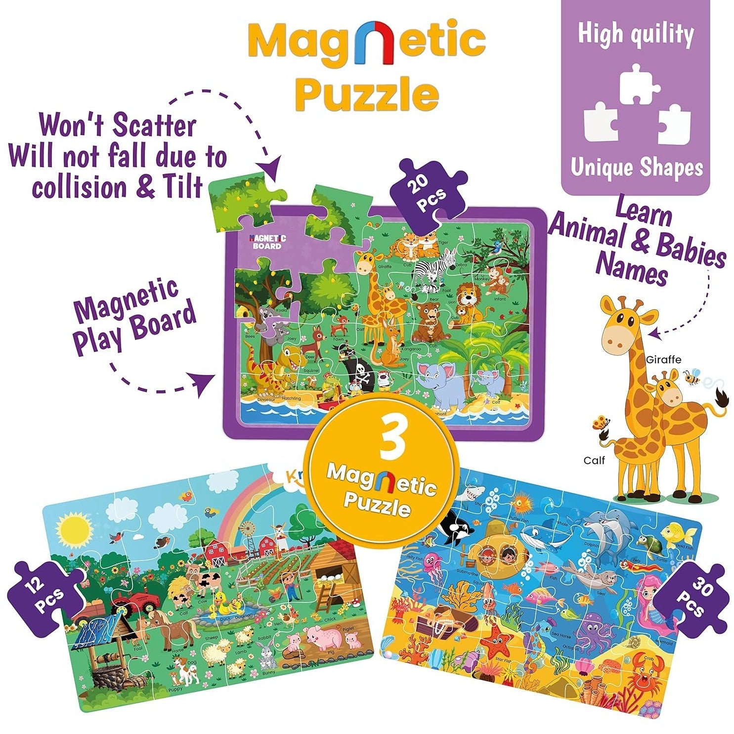 🐌Magnetic Play Board: The set comes with a magnetic play board that holds the puzzle pieces securely, allowing for easier assembly and display.