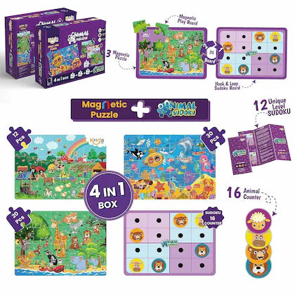 4 in 1 Animal Magnetic Puzzle & Sudoku
